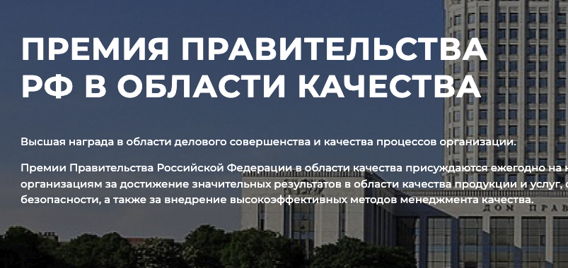 Совет по присуждению премий Правительства Российской Федерации в области качества информирует об объявлении 30-го юбилейного конкурса на соискание премий Правительства Российской Федерации в области качества 2026 года.