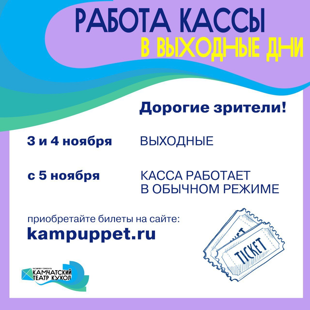 Касса театра на выходных, но билеты всё равно можно купить!