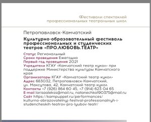 Для нас большая честь быть в одном ряду с главными театральными событиями страны. Мы гордимся, что наш фестиваль – единственный профессиональный театральный фестиваль на Камчатке!