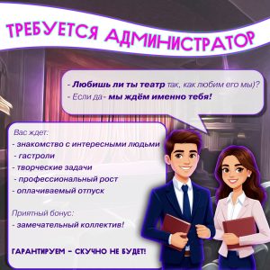 📌От нас — полная занятость, знакомство с интересными людьми, гастроли, творческие задачи, профессиональный рост и оплачиваемый отпуск. Приятный бонус-замечательный коллектив!