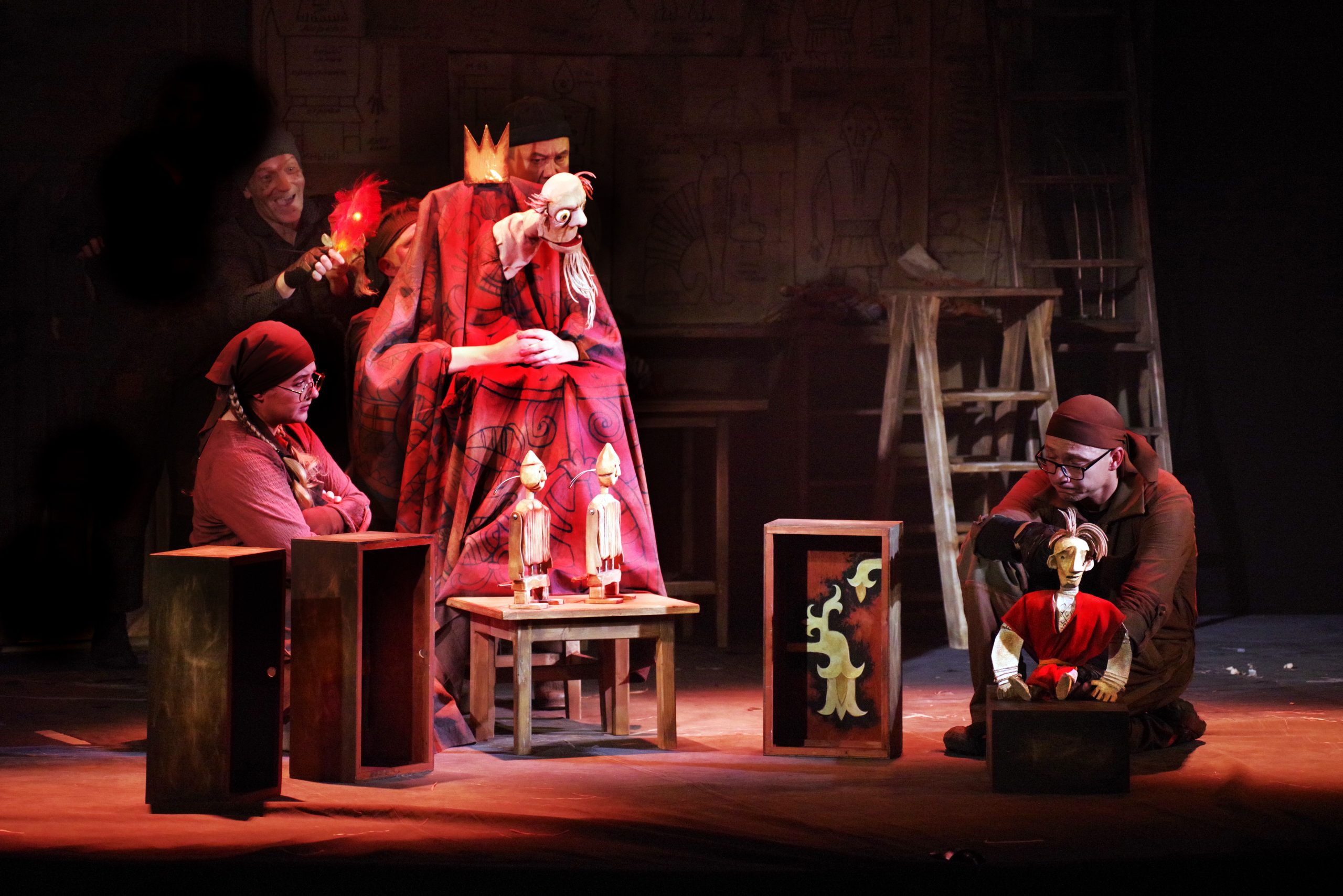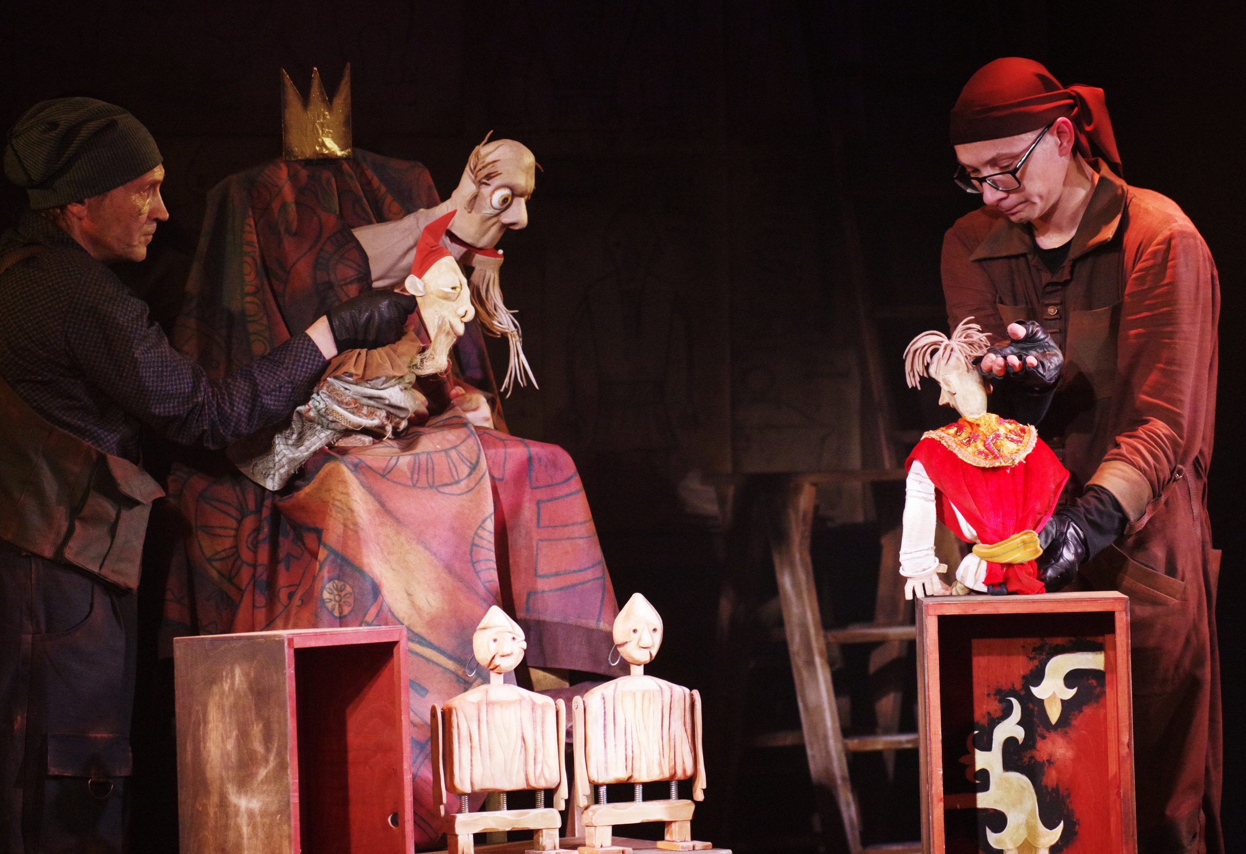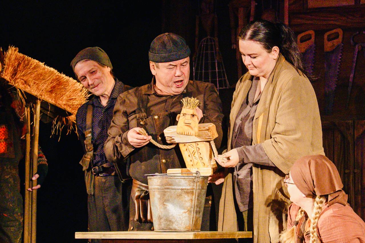Действие спектакля происходит в кукольной мастерской среди инструментов, материалов и заготовок. С их помощью разыграют известную всем взрослым и детям сказку Петра Ершова «Конёк-горбунок»